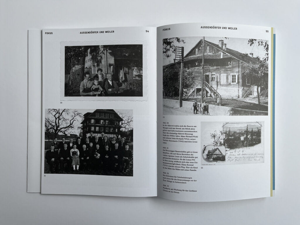 Auf der interaktiven Webseite, auf der Sie gerade sind, können Sie Ausschnitte der 16 Interviews und alle Bilder anschauen, die in der Publikation verwendet wurden. Die Fotografien sind wenn immer möglich verortet, datiert und kommentiert. Diese können nach Orten in der Gemeinde, dem Jahr ihrer Entstehung oder nach Fokusthemen gesucht werden.